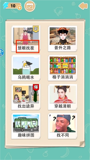 在模式选择页面,轻点“慧眼找茬”选项,这个玩法主要考验观察力,是一场充满趣味的比拼。