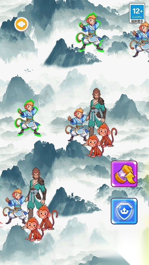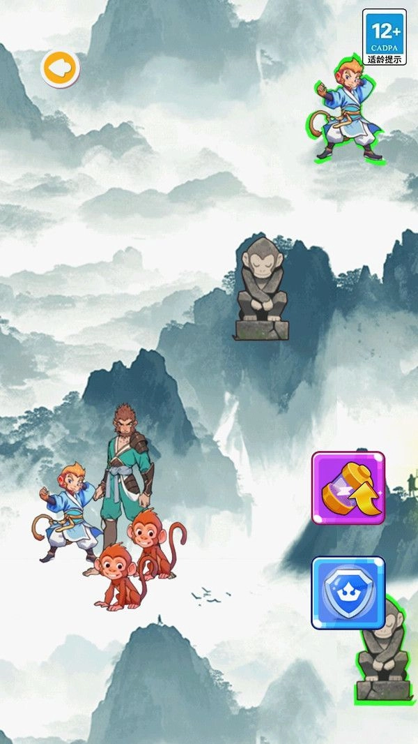 悟空超进化最新版是以经典西游故事为背景的合成闯关游戏,玩家在游戏里能化身为孙悟空、唐僧、猪八戒这些经典西游角色,开启一段满是挑战与成长的冒险旅程。要想成为更具威力的悟空角色,玩家得不断合成和训练,以此提升角色的技能与能力。此外,游戏还有丰富的竞技玩法,玩家可以和众多小猴子展开激烈的竞技较量,只有战胜所有小猴子,才能成为猴界大王。