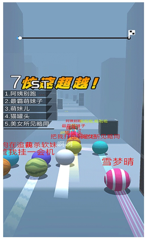 2、每局游戏都有21个玩家在一起竞争,运动员将在跑道上看到五种不同颜色的球。