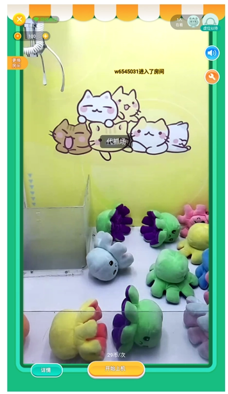 2、进入娃娃机房间,玩家在娃娃机房间内可更换不同的娃娃机,查看当前娃娃机详情,点击开始游戏;