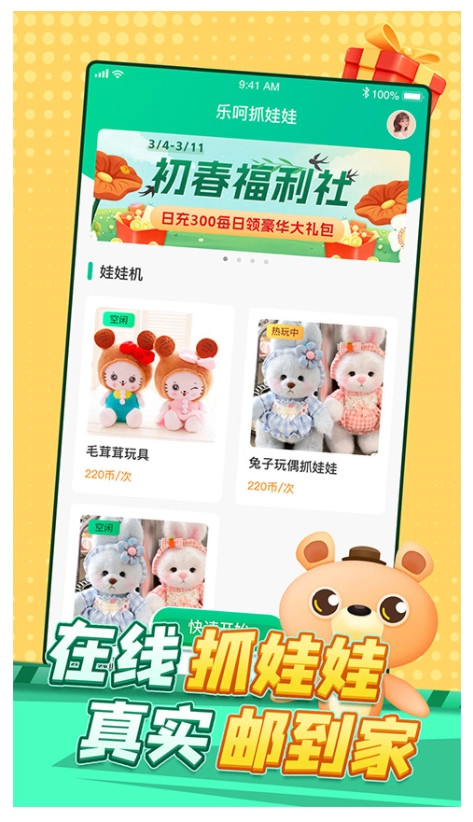 4、随时随地在线抓娃娃,无需出门即可抓娃娃,无需等待,想玩就玩,操作简单,玩家还能收获无限真实的抓娃娃挑战,休闲的时候邀请好友一起加入,看看谁能够获取更多的娃娃。