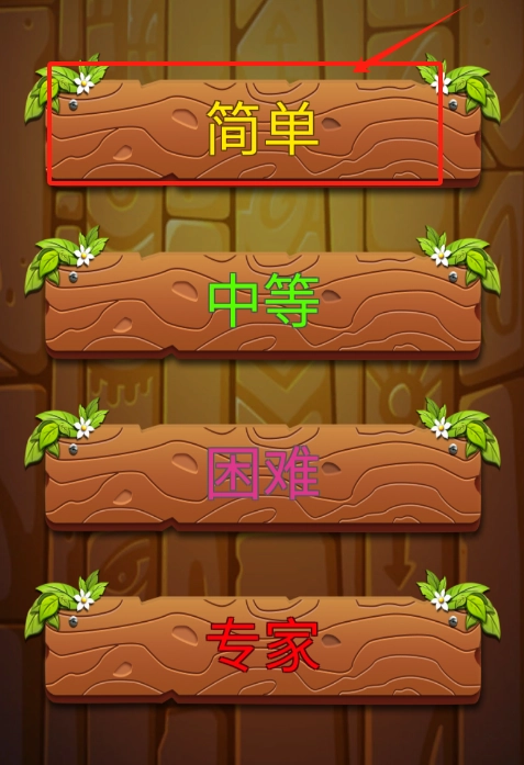 看到红色箭头指向简易木板,点击它就能选择最基础的游戏难度开始游玩啦。