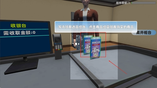 在操作层面,用户可通过点击并拖动的方式来调整货架的布局;界面右侧的按钮主要用于完成结账收银的操作;而界面顶部则会实时显示当前的资金状况与库存信息,以便用户能够随时查看并进行相应调整。
