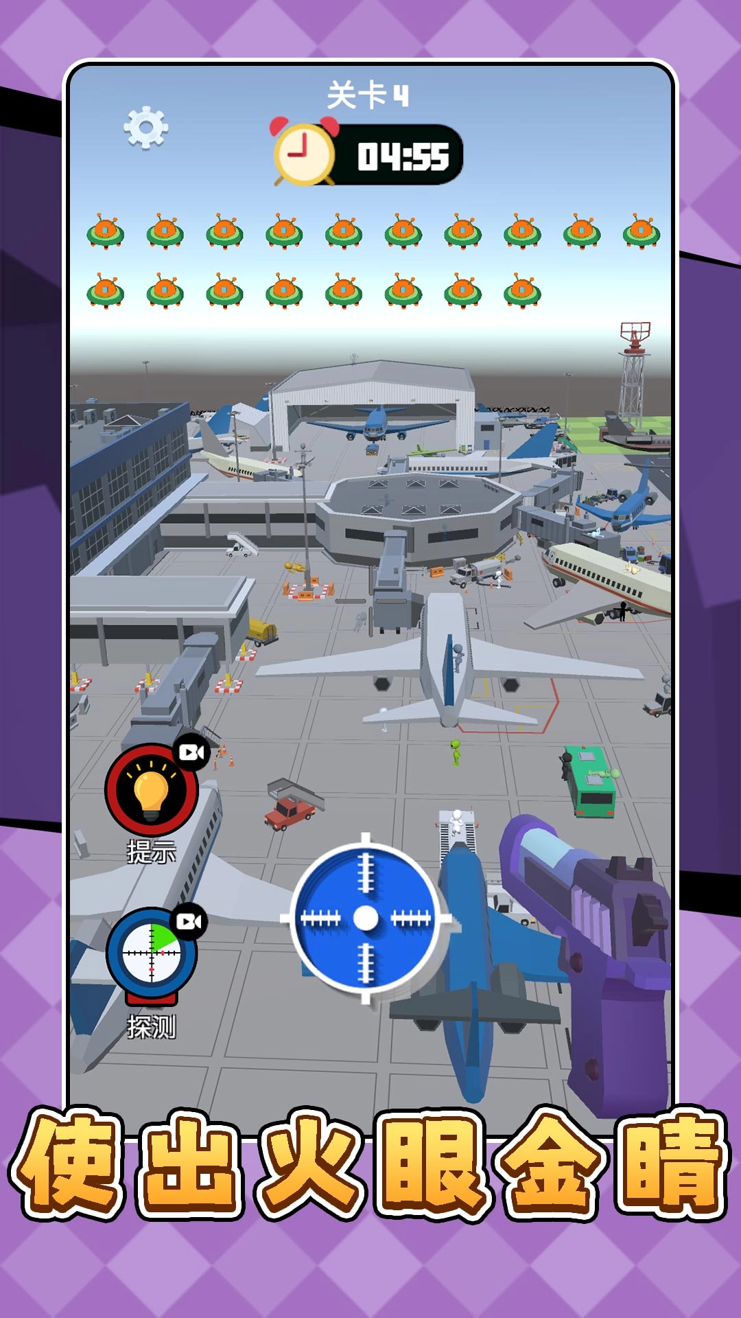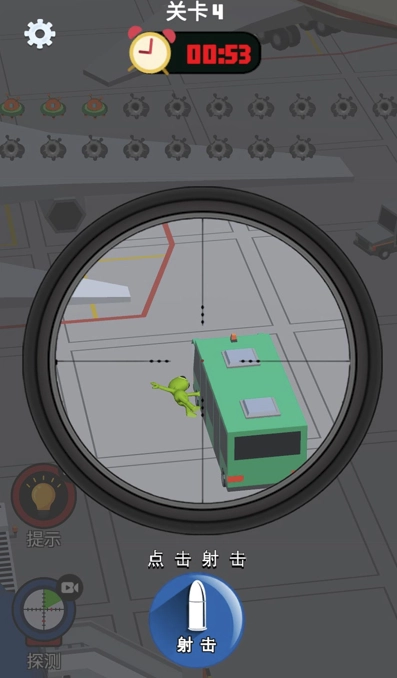 你可以操控角色随意移动,仔细搜寻每个角落,找出所有藏起来的外星人,用武器迅速结束战斗。
