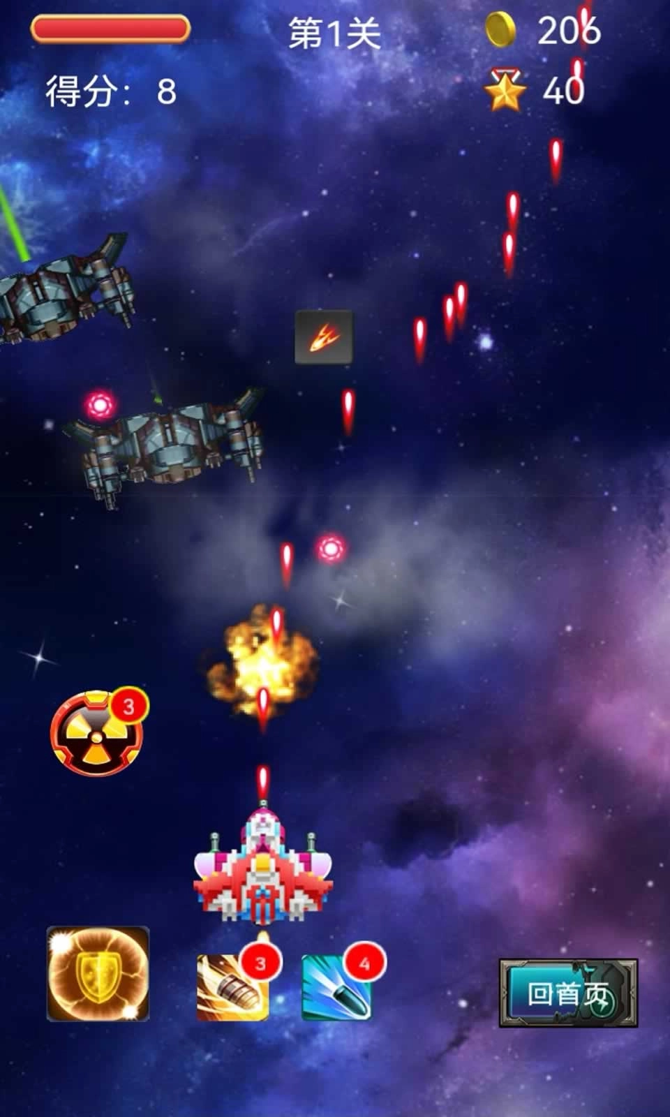 单指滑动即可精准控制战机走位,自动射击系统让玩家专注闪避与策略。 积攒能量释放毁灭性大招,合理搭配普通攻击与技能形成强力连段。 包含主线剧情、无尽模式、Boss速通等多样化玩法,满足不同玩家的挑战需求。