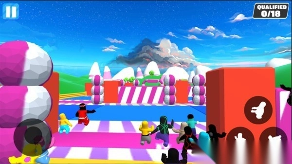 4人实时匹配系统支持自定义好友房,决赛圈激活极速模式可让场景滚动速度提升2倍,淘汰阶段会触发糖晶护盾机制。