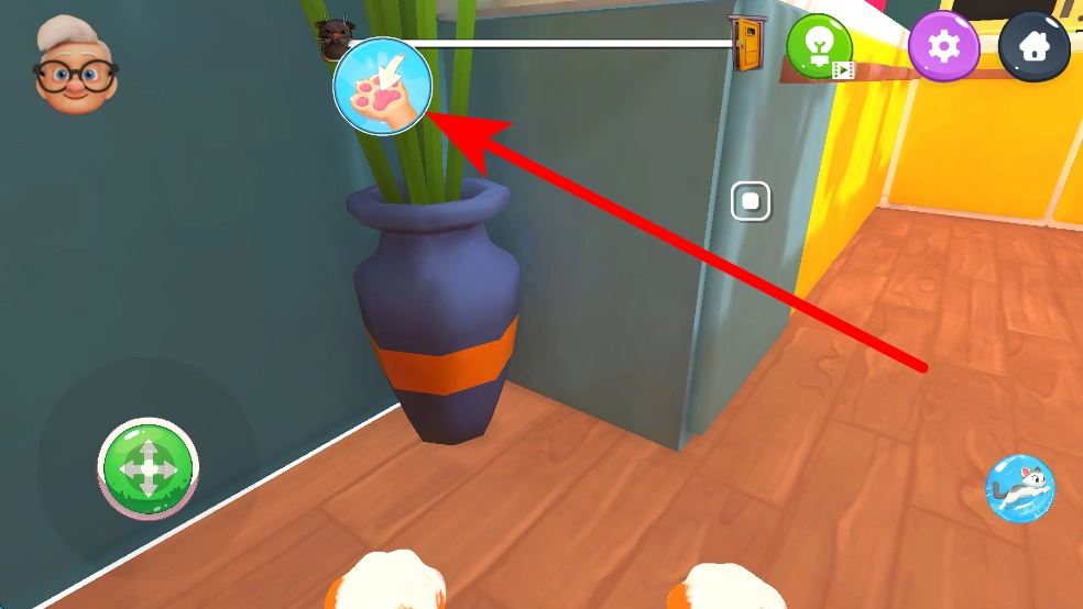 进入后,会处于室内场景中,首先可根据提示,操作猫咪的爪子,对周围的物品进行互动,比如靠近触碰花瓶。