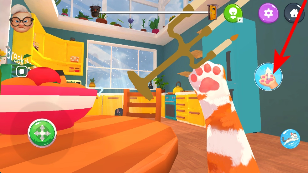当靠近花瓶这类物品时,点击对应的操作按钮,猫咪便会做出搞怪动作,把花瓶推倒,让你体验搞怪的乐趣。