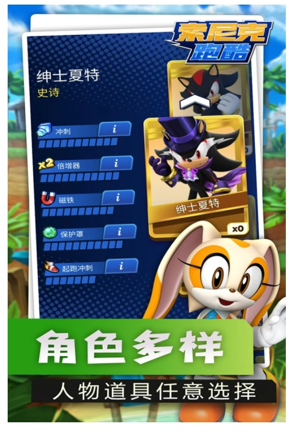 与索尼克的伙伴们同行,扮演塔尔斯、夏特和纳克鲁斯等喜欢英雄,惊喜多。