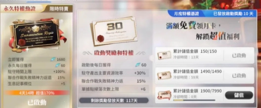 氪金相关,(图片内金额为台币,大概除以4.5即可)永久卡大概110到120左右,因为目前有返月卡的活动,买永久卡肯定是能领到第一张月卡的,还算是可以吧。