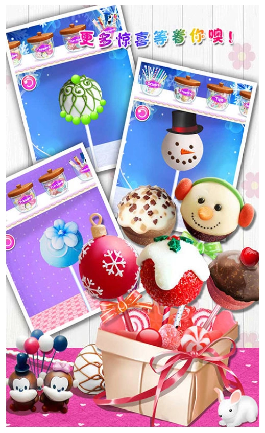 3、游戏提供了多种原材料、糖果装饰以及蛋糕模型,让玩家可以发挥自己的创造力,制作出独一无二的棒棒糖蛋糕,很多的趣味挑战任务,各种难度的烘焙内容,让您掌握烘焙蛋糕的知识。