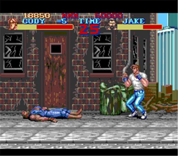 第五关的攻略是这样的:你得先把一把剑和一根铁管带到BOSS所在的位置。抵达BOSS处后,先抓住他,向上垫两下,再往右边摔一次。接着观察上下方的空间,选空间更大的那一侧,再次抓住BOSS重复上述动作。等小兵出现后,就把BOSS往左边摔。此时你要拿着剑站在最右下角向左砍(因为系统设定,敌人无法绕到你身后),不过这并非绝对安全,所以一旦BOSS全身发红冲过来攻击你,最好看准时机再按键操作。这样很快就能通关了。