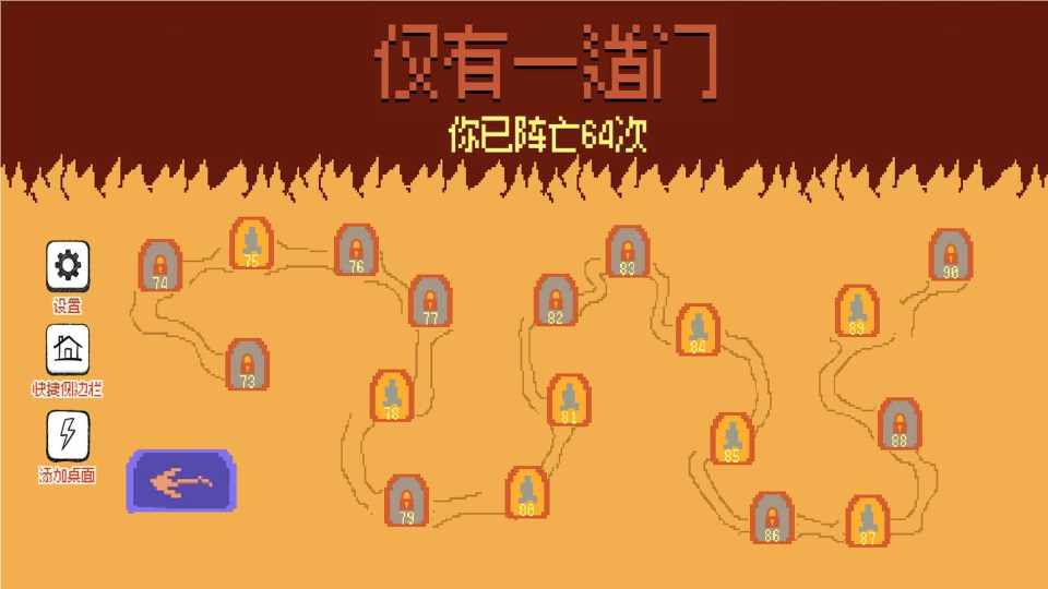 《仅有一道门》手机版是一款极具挑战性的闯关游戏,玩家需要操控角色,想方设法抵达对面的大门。游戏过程中遍布各种陷阱,还潜藏着许多难以察觉的危险,这就要求玩家时刻保持高度警惕。复杂的地形构造与突如其来的障碍,考验着玩家的灵活应变能力,想要顺利通关,需要具备一定的操作实力。