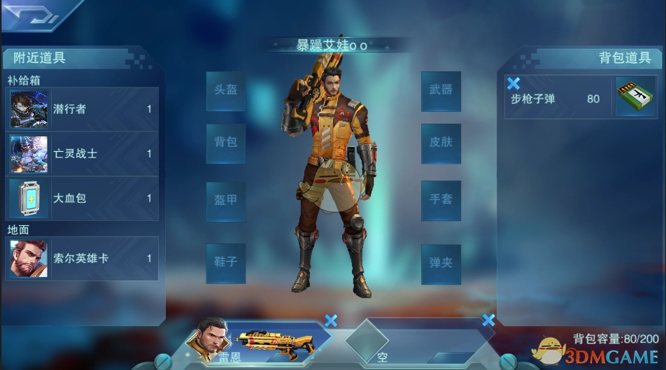 四、资源收集 在游戏地图里,各个房间以及野外的部分区域,会随机刷新出各类道具资源,像头盔、防弹衣、鞋子、英雄卡、子弹、技能卡、回血包之类的都有。要是发现了这些道具资源,只要靠近它们,点击对应的图标,就能顺利收集到这些道具。收集到的道具会存放在背包当中,点击背包就能查看并使用这些道具了。