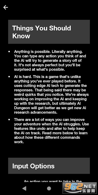 《AI Dungeon》是一款依托AI技术打造的文字角色扮演游戏。在游戏里,你能够自行设定专属世界,自由决定角色的每一个举动与言语。AI会为你构建独一无二的专属世界,你还能开启不同流派的冒险之旅,不妨来体验一番吧!