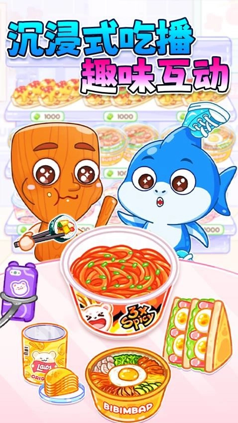空闲的时候去超市逛逛,从香辣的零食到高品质的牛排,从本地特色小吃到国外的美食料理,各种各样的美味食品都能随意挑选。另外还可以兼职做珍珠奶茶,准确地完成粉丝下的订单来获取金币,从而解锁更多的食材。