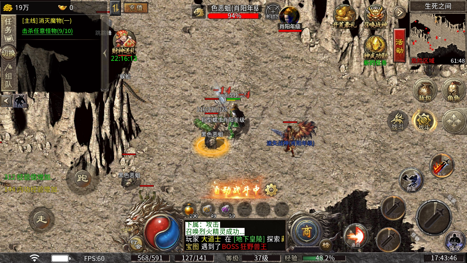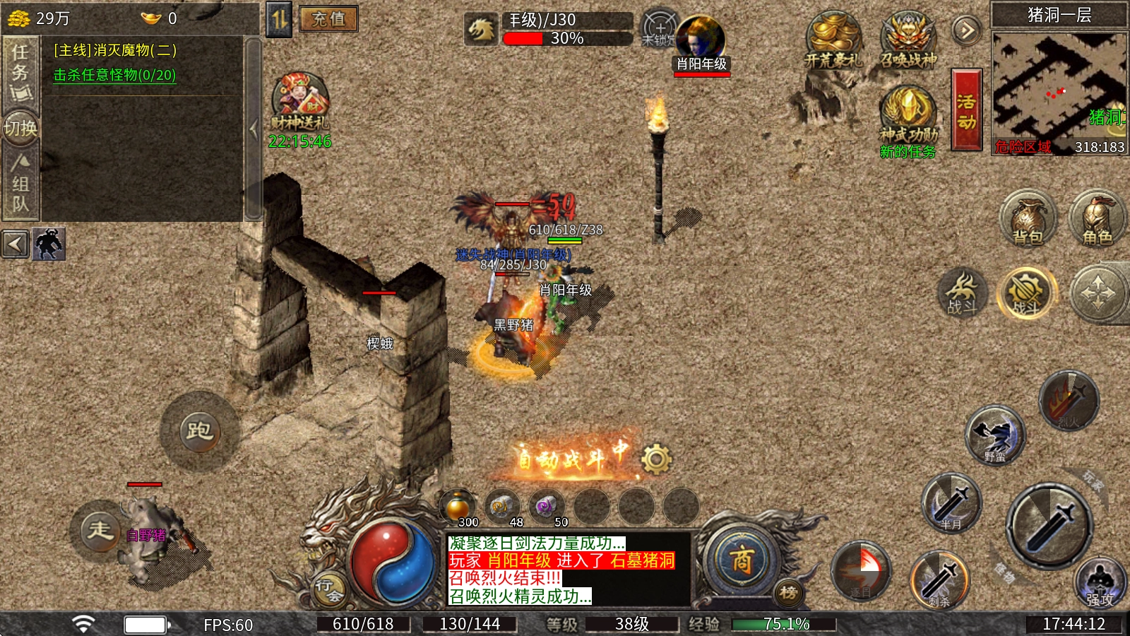游戏内右上角有召唤战神的功能,前期打怪时一定要召唤战神来提高打怪效率。