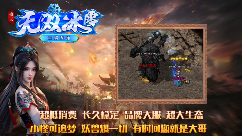 盛云无双冰雪,185冰雪单职业版本来袭!小怪暗藏惊喜,妖兽掉落无上限!上线即享自动捡取、自动回收,首充礼包直接领,会员等级全靠打怪免费升满,各类充值货币送不停,击杀BOSS更能爆落海量充值道具!本服时间就是王道,只要肯投入时间,所有玩家都能逆转战局,人人皆可通关,逆袭成为大佬绝非空想!