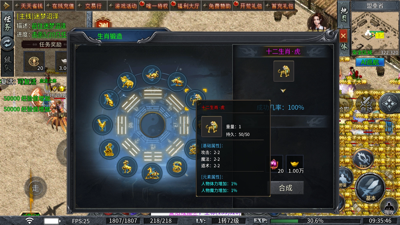 生肖锻造玩法:消耗一定数量的生肖碎片与元宝,就能合成对应的生肖。每一个生肖都能为角色增加攻魔道属性以及元素属性。