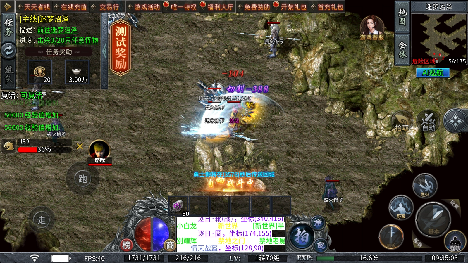 激情泡点、幸运活动、狂暴活动、怪物屠城等精彩活动持续推出,玩法充满激情,奖励也极为丰厚。