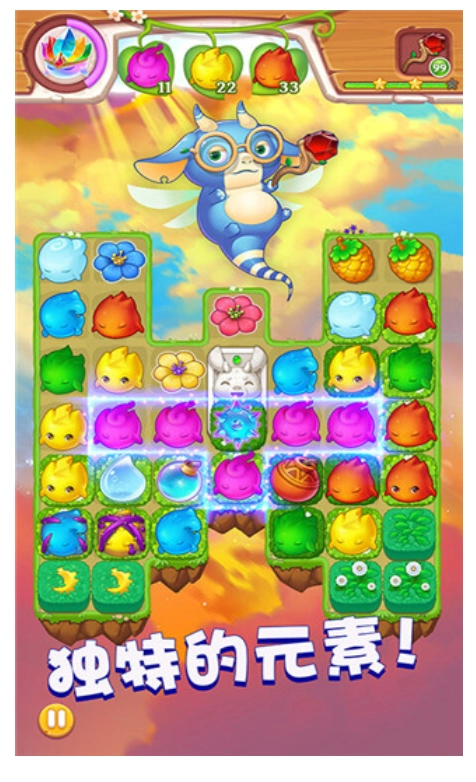 2、玩家需要用可爱的小恶魔操作元素的力量,收集四叶草,拯救家园,通过消除获得水晶,此外游戏除了传统的消除玩法,还融入了引人入胜的游戏剧情,趣味的消除体验上,玩起来不会感觉到无聊。