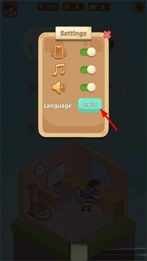 在设置界面中,找到【Language】选项并点击其中的【English】,即可完成语言切换。
