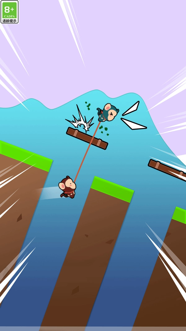 双人解压跳一跳是一款需要两位玩家协作参与的闯关游戏,两位玩家的脚被绑在一起,当其中一位跳跃时,另一位会被顺势带着荡悠起来。地图里的各类模块陷阱都得依靠两人共同合作才能顺利通过,要是有玩家故意捣蛋或者消极摆烂,通关就会变得格外困难。这时,你就可以用自己的右手狠狠给队友来上一击,之后两人的配合往往会更加默契顺畅。