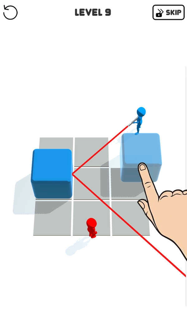 进入LEVEL-2界面后,按照提示点击蓝色方块来调整其位置,帮助红蓝小人继续推进游戏进程。