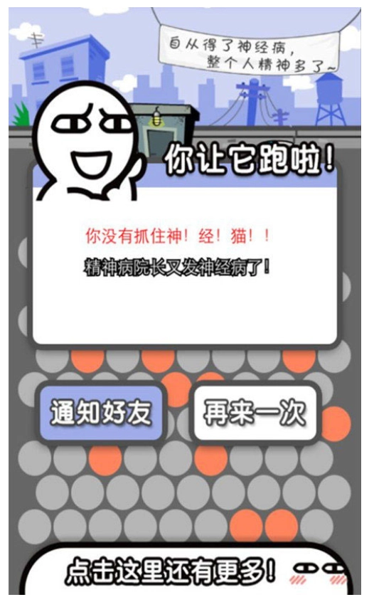 2、精彩的游戏玩法,有一只白色的贱贱的神经猫从医院跑出来了,主要的任务就是赶紧抓住它,趣味十足的休闲玩法,快速的移动,贱贱的小猫会跟您一起移动,要困住它是非常的困难的,十分刺激。