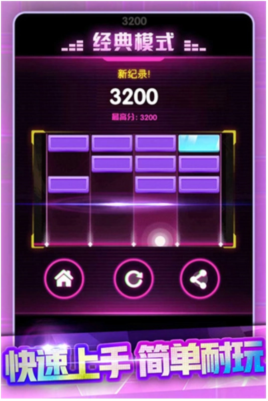 2、游戏结合了音乐节奏和点击玩法,让玩家能够一边享受优美的音乐,一边感受指尖在砖块上跳跃的快感,同时玩家还能解锁经典模式、冰块模式、射击模式这三种模式,增强了游戏的可玩性,惊喜多。