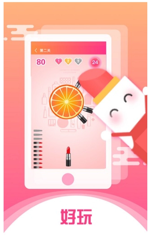 2、流行的玩法,备受女性玩家欢迎,玩法其实和飞刀挑战类似,玩家需要不断把口红射在圆盘上,得分越高获得口红几率越大,据说每天都会出现一万只口红让您获取,轻松的收集,十分有趣。