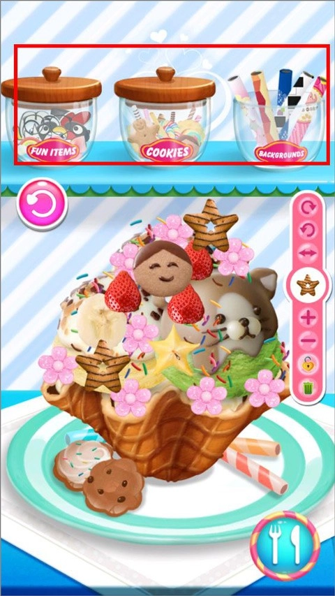 2、里面有非常多的工具可以让我们选择,让我们制作出非常多与众不同的冰淇淋。