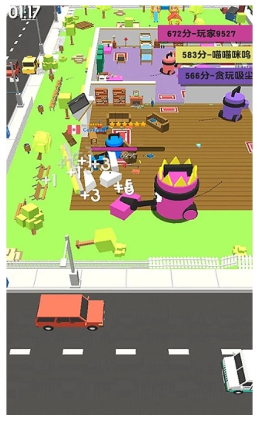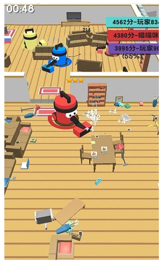 1、玩家将化身手持吸尘器的清洁达人,在堆满杂物的房间中开启一场独具特色的“吸尘对决”,休闲的竞技模式,为您带来诸多轻松惬意的体验,吸走房间里的各类物品,持续提升自身的吸尘实力,达成精彩任务。