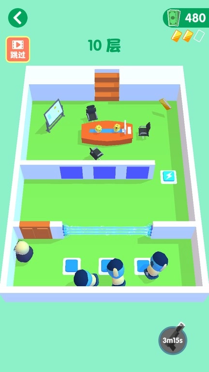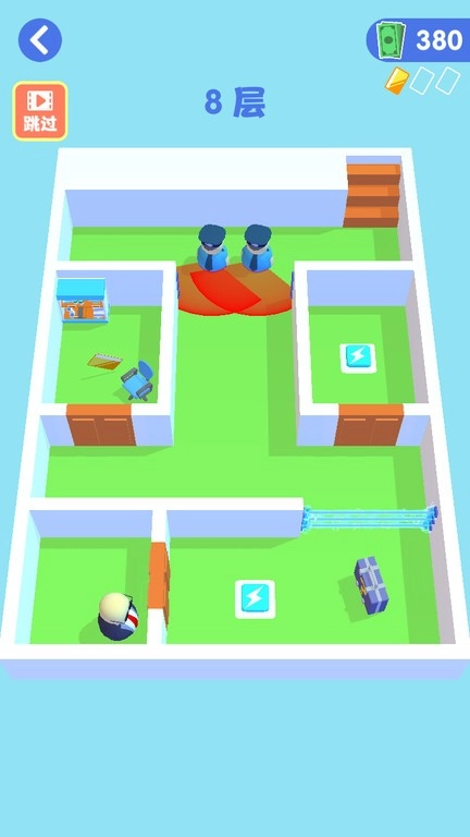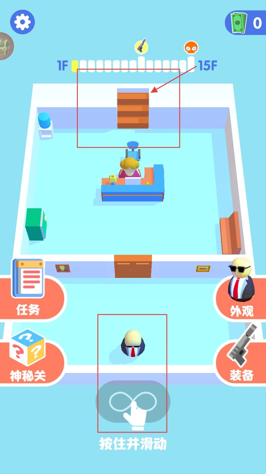 进入楼层后,你可以按住屏幕并滑动来操控特工移动,避开途中的障碍,到达目标区域后击败BOSS,以此推进关卡进度。