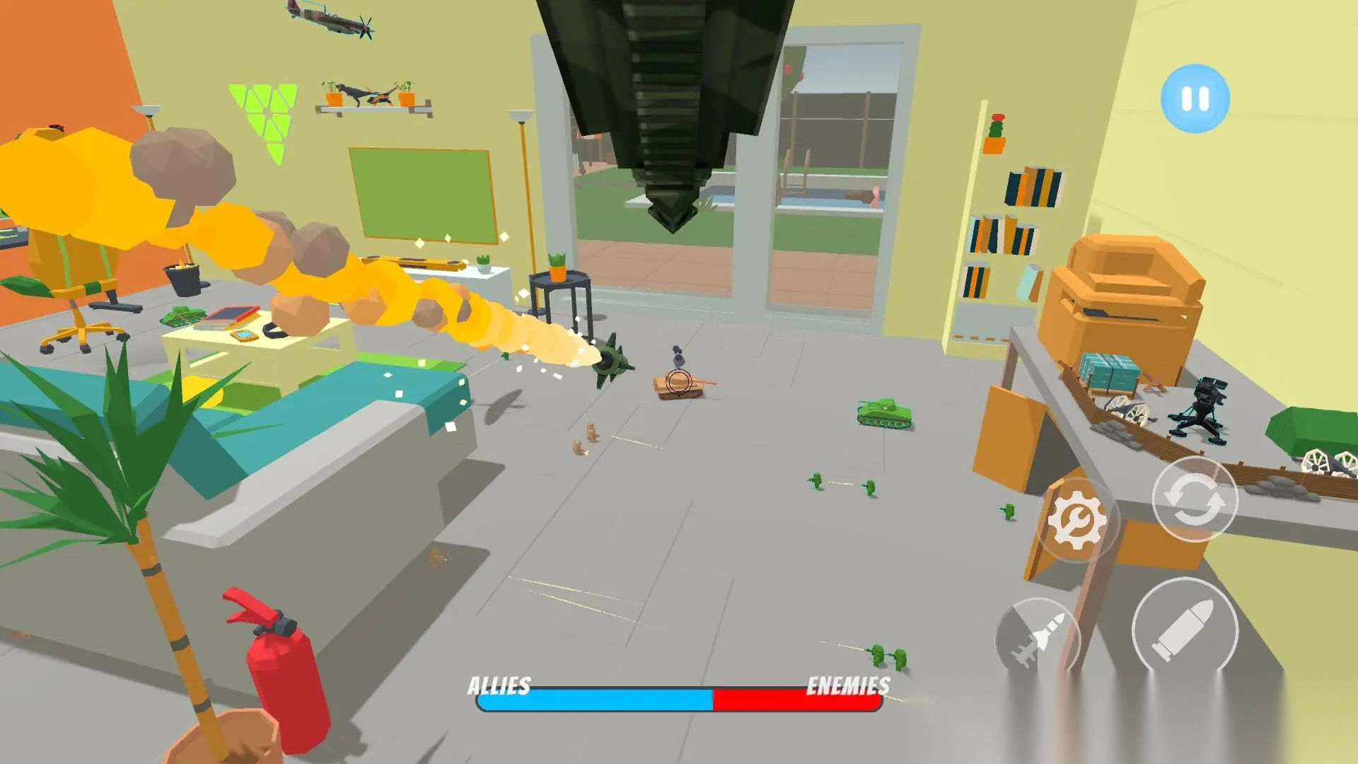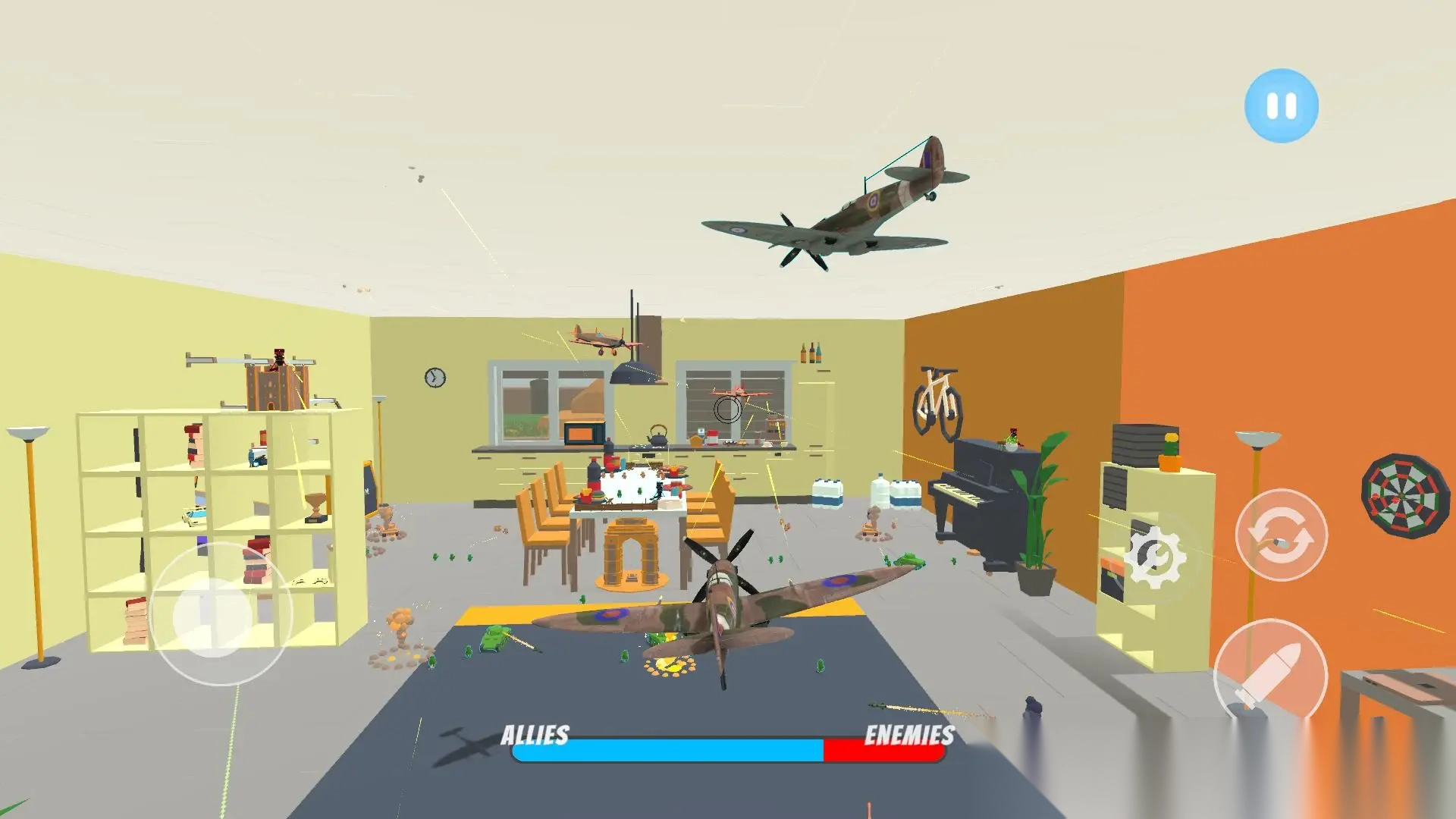 《玩具大战防空部队》是一款兼具创意与怀旧感的动作射击游戏。玩家将踏入一个鲜活的童年玩具世界,操控微型战机在客厅、花园等熟悉场景里开启紧张刺激的战斗。游戏把童年玩具的怀旧元素与激烈的室内外战争相融合,打造出别具一格的沉浸式体验。玩家需在战斗中避开家具等障碍,消灭敌军,最终赢得胜利。