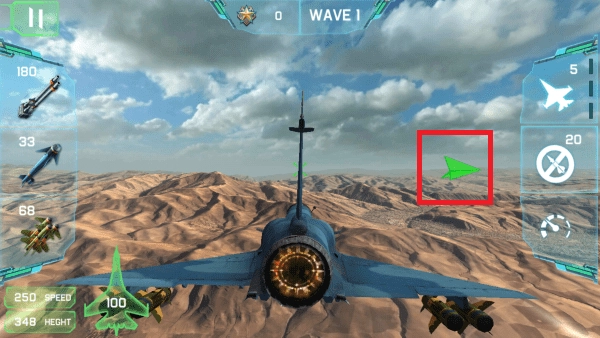 当你的武器对准敌人战机时就会变红框,就能攻击了。