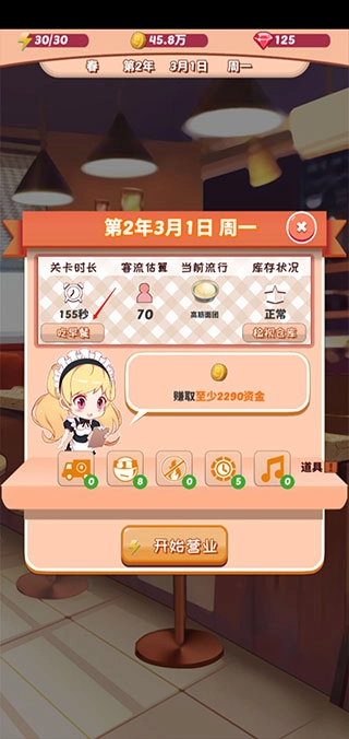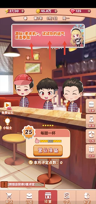 建议尽量完成每日营业时段的任务,毕竟餐厅每月都会进行星级评定,星级越高,不仅顾客数量会随之增加,店铺所有菜品的价格也能得到提升。