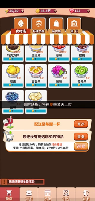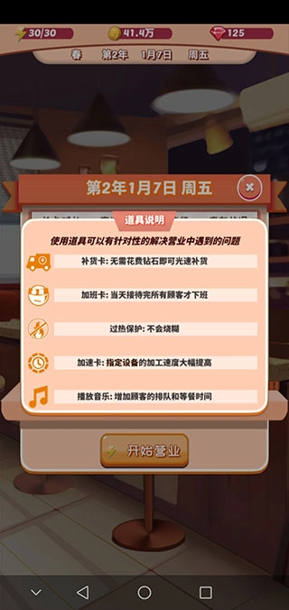 食物能够延长营业时间,提货券可以购买到反季水果,道具卡能够有针对性地解决营业过程中遇到的问题