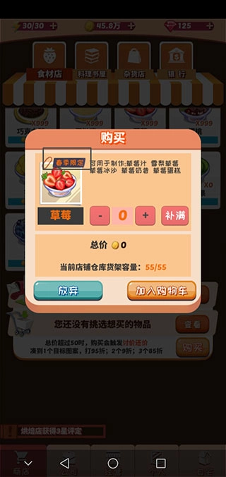 另外商店里的食材列表支持上下滑动浏览,通常当季水果都在列表最下方;要是想购买反季水果,点击时会弹出提示告知该水果的上架季节,而当季水果也会标注“季节限定”的字样。