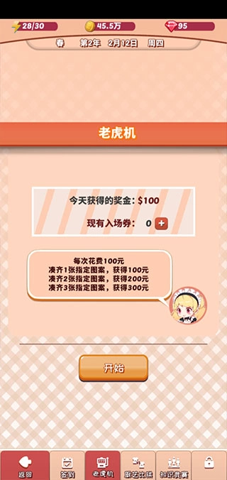前期手头比较紧的小伙伴可以试试玩游戏,三个金币就能兑换300(看广告能翻倍,一次就能拿到600,每天可以玩一次,也就是完成一次营业就能参与哦),这个是可以左右滑动操作的(现在更新版本后叫幸运机啦)