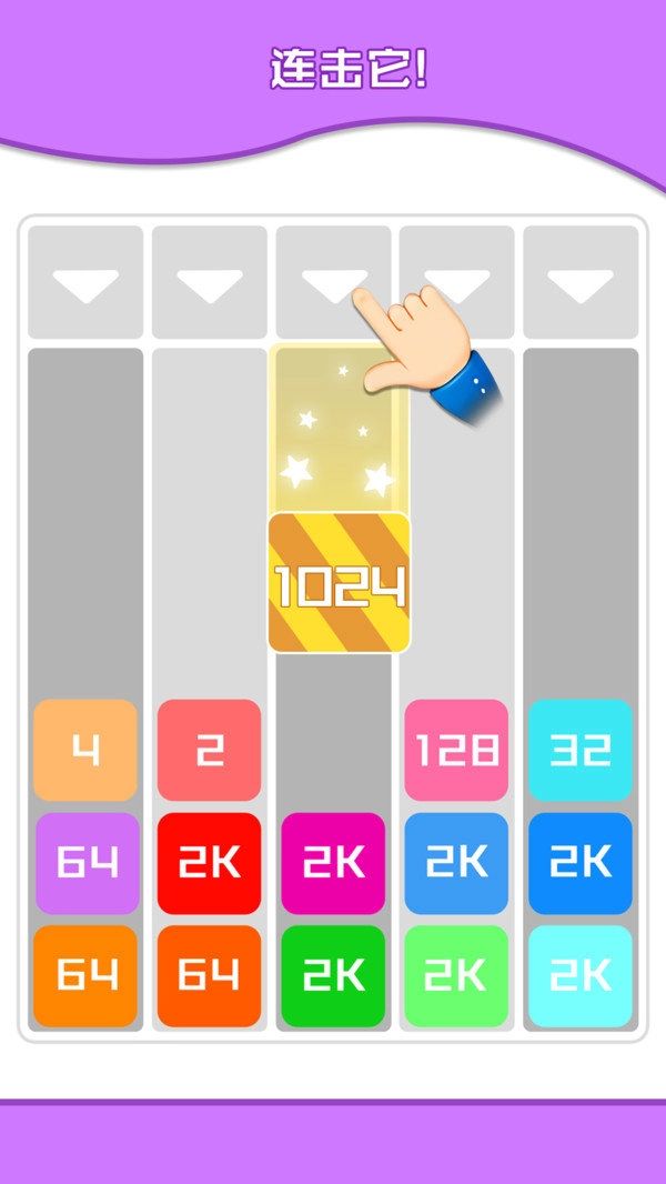 点击屏幕来放置数字方块,当数字相同的方块发生碰撞时,它们就会合成一个更大的数字。