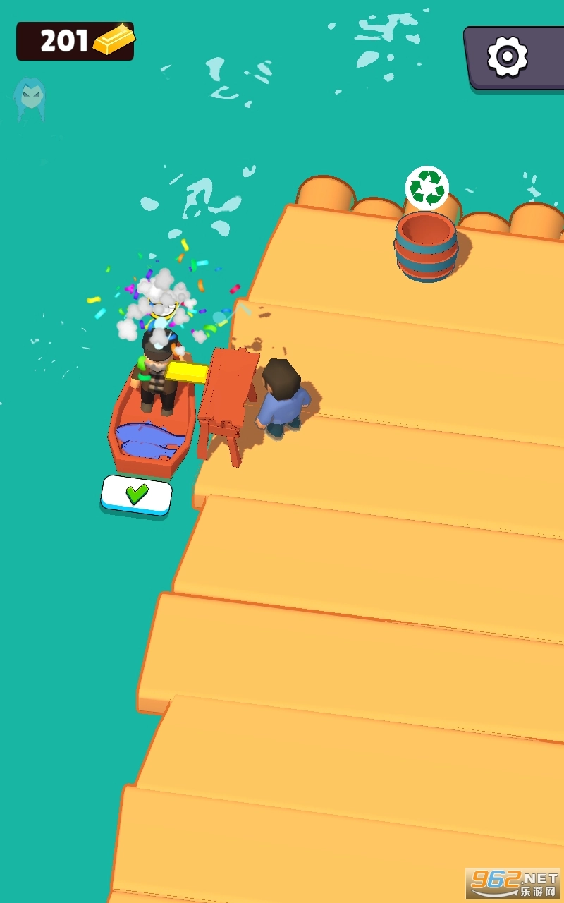 :抓鱼,收集木材,拉金属