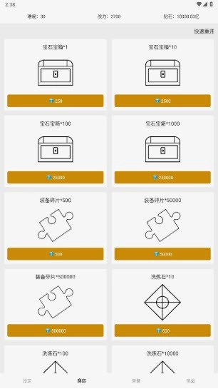 可以看到商店里陈列着各式各样的装备、武器与道具,玩家能够自行挑选并购买。