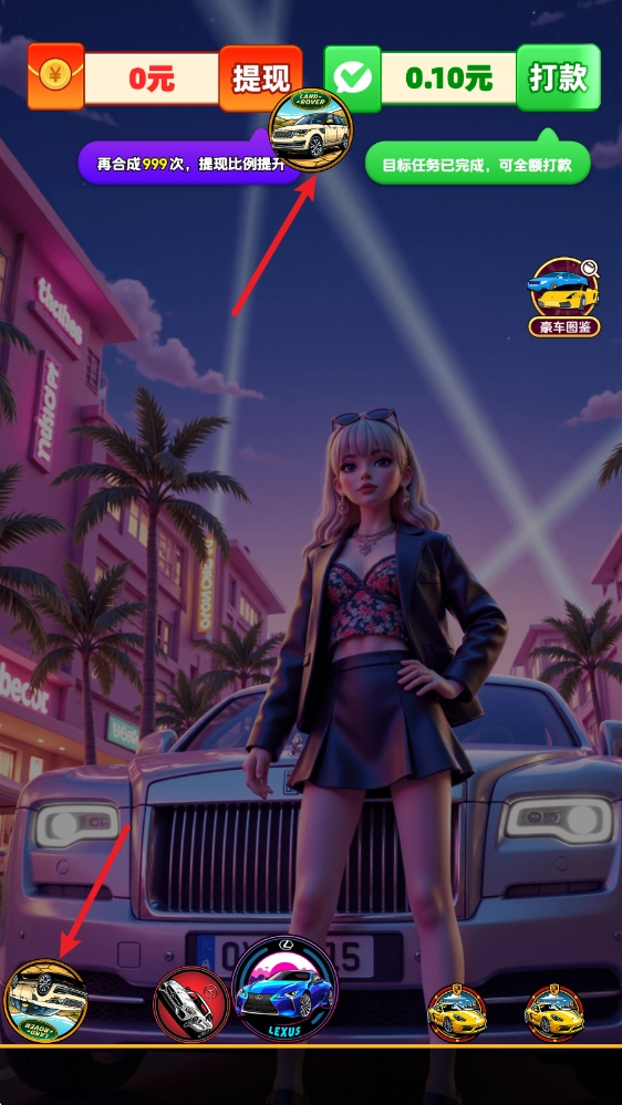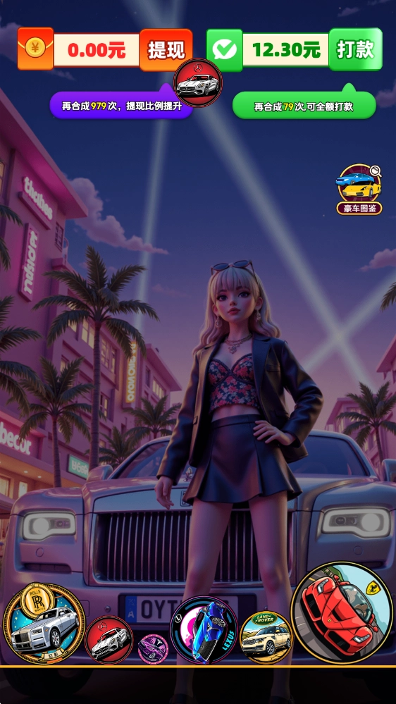豪车点点,是一款以各类世界知名豪车为核心主题的趣味2048合成游戏。在游戏里,我们能通过操控车辆下落的位置,让两辆相同的车碰撞合并,从而得到更高级别的酷炫跑车!每一次合成操作都有机会赢取丰厚奖励,而且合成出的车辆等级越高,所能获得的奖励就越丰厚!不仅如此,要是通过合成得到最高等级的阿斯顿马丁,还能有机会获取额外的惊喜大礼呢!