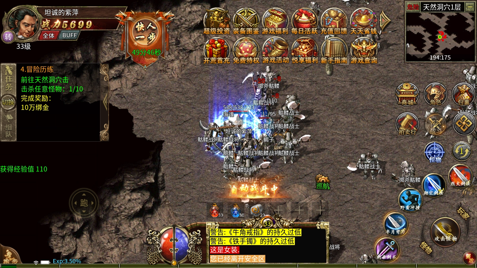 本服地图无门槛免费进入,爆率全面开放,打宝PK体验更激情!装备材料均可获取,时间就是一切,凭肝也能逆袭土豪!