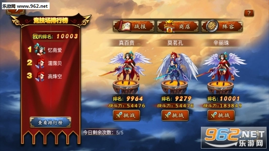 竞技场商店里,你能用在竞技场挑战中获取的竞技币来兑换五星武将后羿的元神,每天只能兑换一次,每次兑换五个。