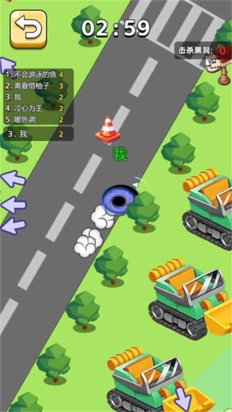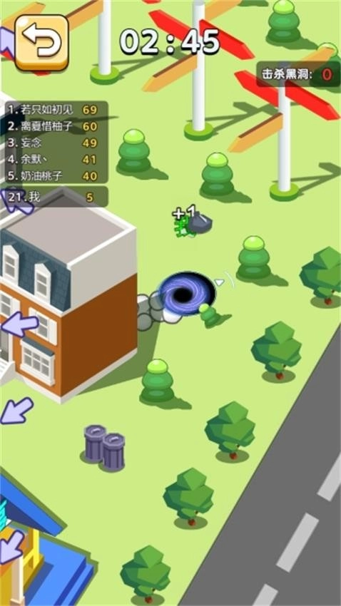 在游戏里,要是碰到比你小的黑洞,你能把它吃掉来让自己变得更大。不过得留意,别被其他更大的黑洞吞掉,防止被反杀。