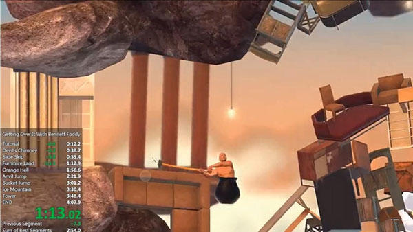 玩家需要在游戏里操控一位坐在罐子里的男性角色,借助手中的铁锤持续向前移动,成功抵达终点就能解锁下一个关卡。这款游戏的玩法其实不难,核心就是把锤子当作支撑点来推动自己不断前进,但它对玩家的耐心和操作水平要求极高——由于物理引擎的作用,每次前进的距离往往和预期存在偏差,实际操作起来远没有想象中那么容易。更让人头疼的是,哪怕你费了九牛二虎之力爬到了最高点,稍有不慎就会从高处坠落,只能重新开始挑战。所以这是一场需要长期坚持的较量,感兴趣的朋友不妨来试试!