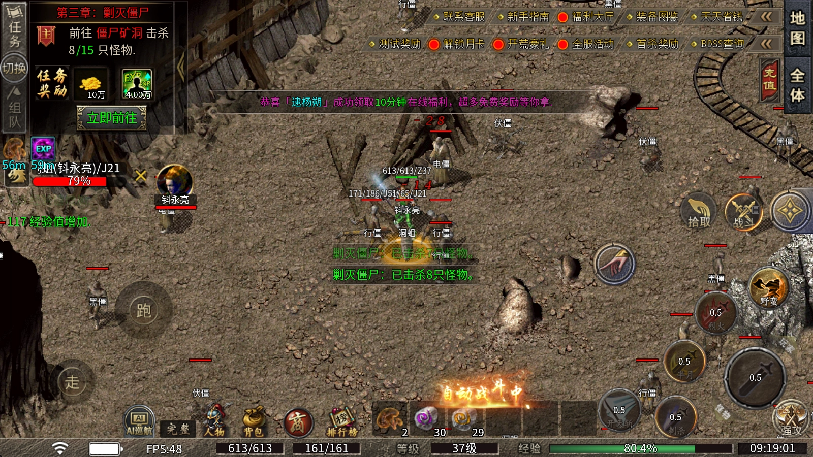 吃下灵芝、经验卷按照提示做任务。
