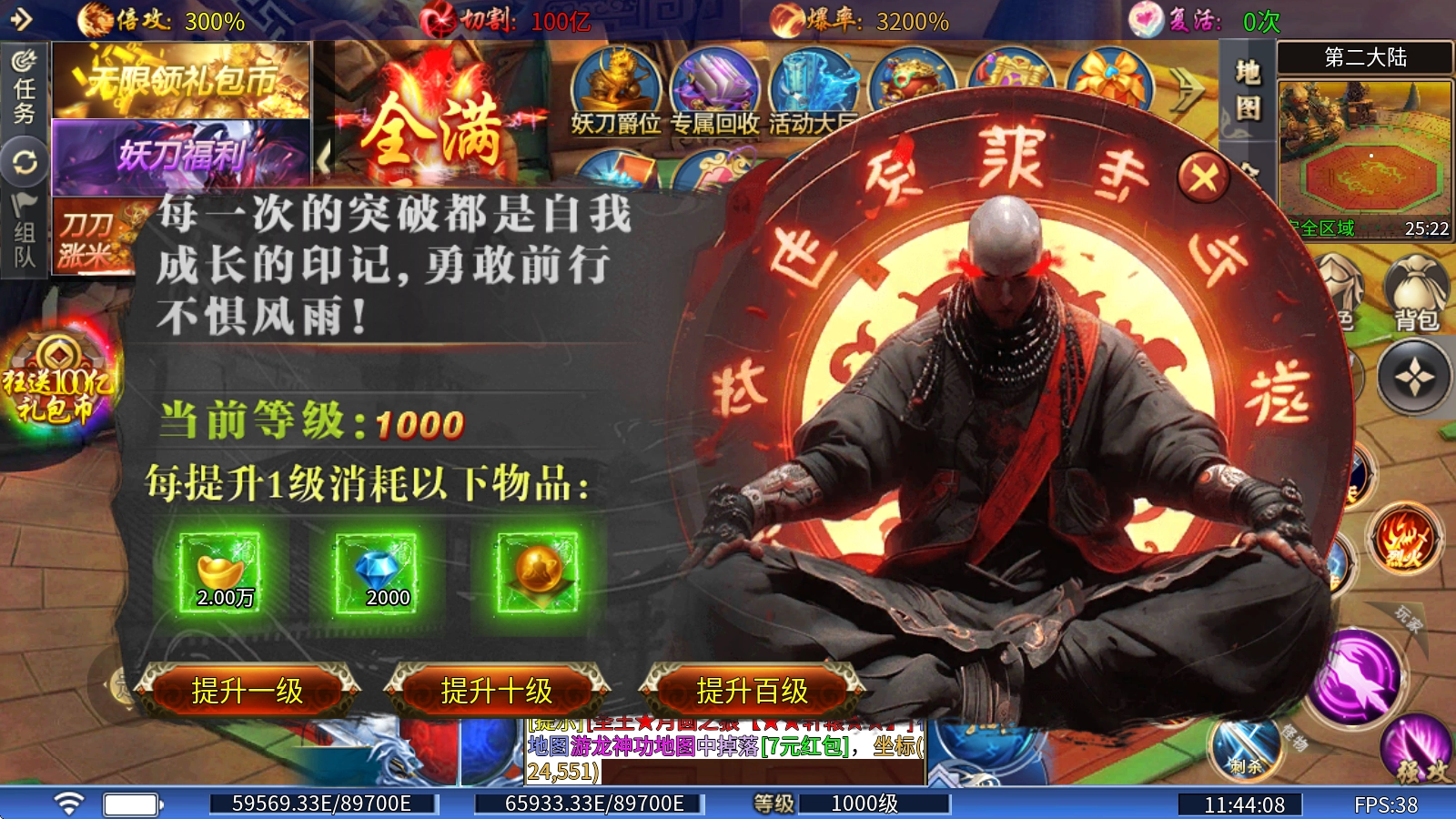 等级突破规则:当等级达到1000级后,消耗元宝、妖刀币以及等级提升丹这三种道具,就能继续提升等级。